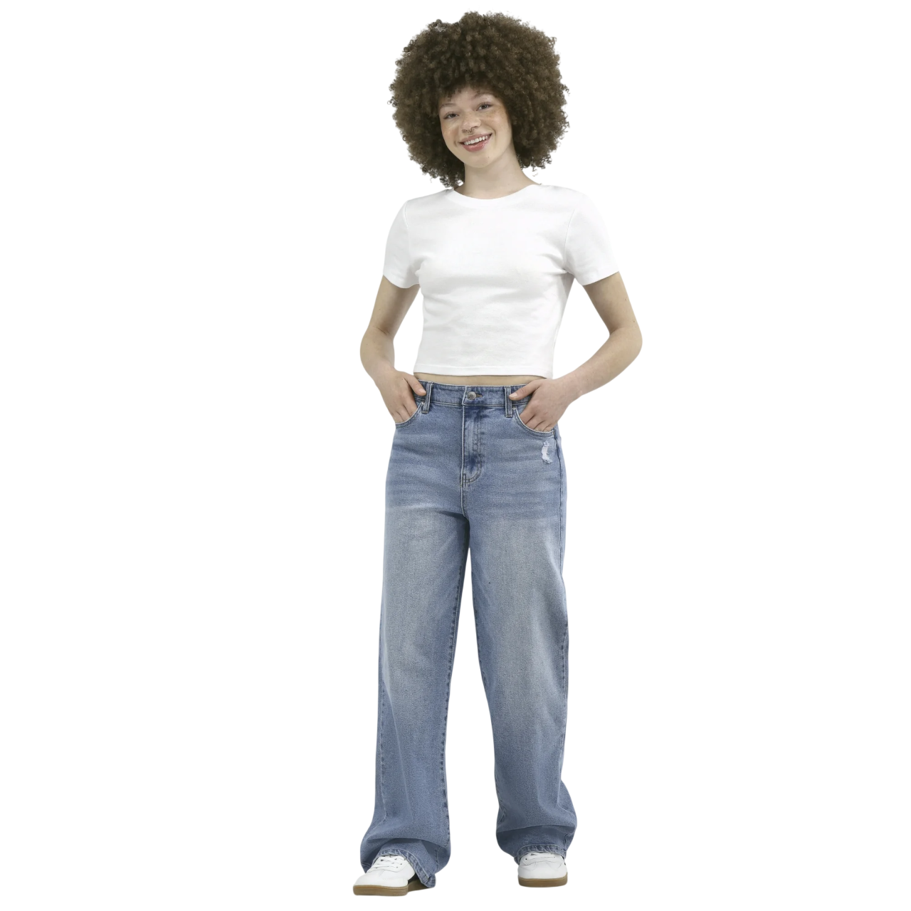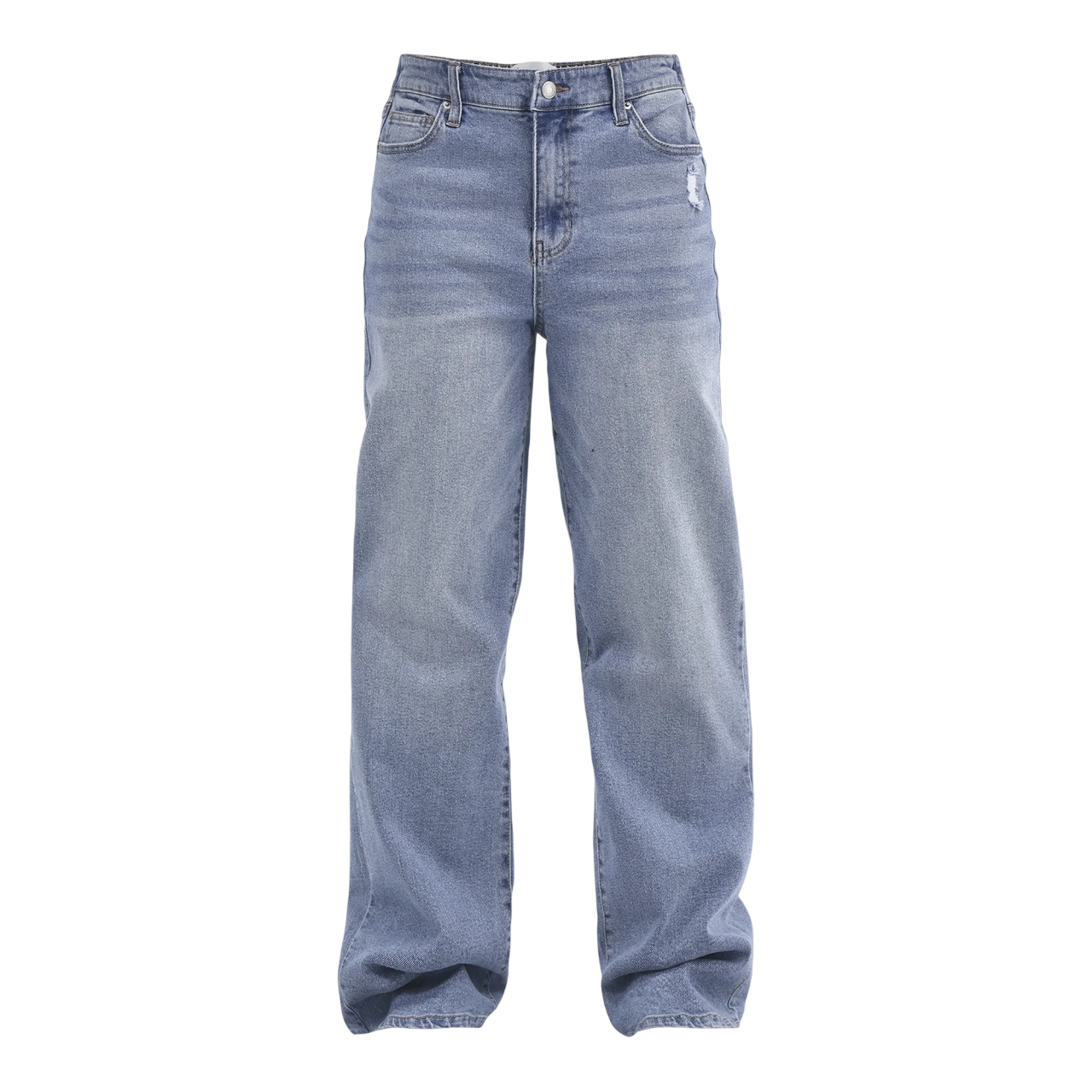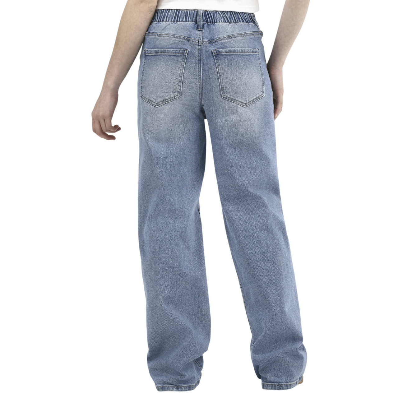 Designed for everyday comfort, these No Boundaries High Rise Baggy Wide Leg Pants are crafted from stretch denim with an elastic back waistband for ease of movement. The wide leg and baggy fit create a relaxed, versatile style that works well with casual tops and sneakers.